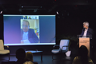 La abogada Alejandra Rojas ha moderado el acto junto a Francesc Montserrat, coordinador de Casa Amèrica Catalunya, que también ha presentado la sesión.