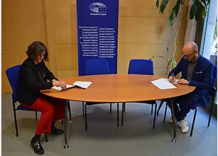 Sergi Barrera, jefe de la Oficina de Enlace del Parlamento Europeo en Barcelona, y Marta Nin, directora de la Fundación Casa Amèrica Catalunya, han firmado un acuerdo de colaboración entre ambas entidades. El objetivo del entendimiento es dar visibilidad a la agenda latinoamericana de la institución europea entre la ciudadanía, entidades y representaciones diplomáticas de América Latina y el Caribe presentes en Catalunya además de reforzar la labor de divulgación americanista y de relación con personalidades de esta área geográfica.